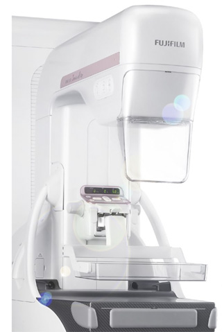 (トモシンセシス)乳房を挟んでX線撮影する検査です。3D撮影により、乳腺の重なりにより病変の発見が難しい場合などでも病変をみつけやすくします。 *検査は女性スタッフが担当します。